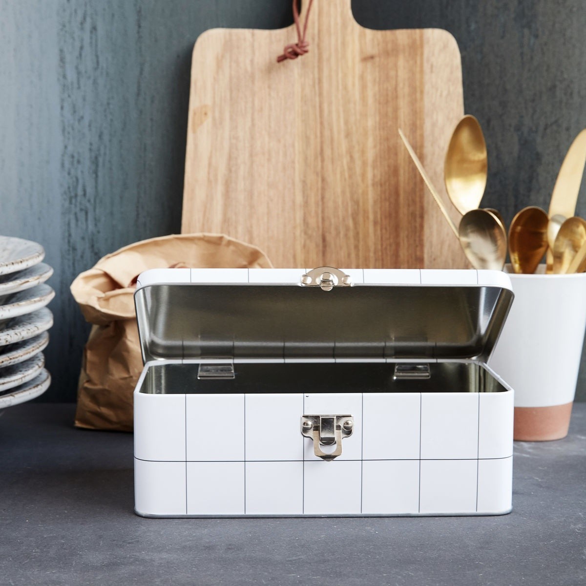 Šedý jídelní box Graph 1, www.vemzu.cz, cena 243,-