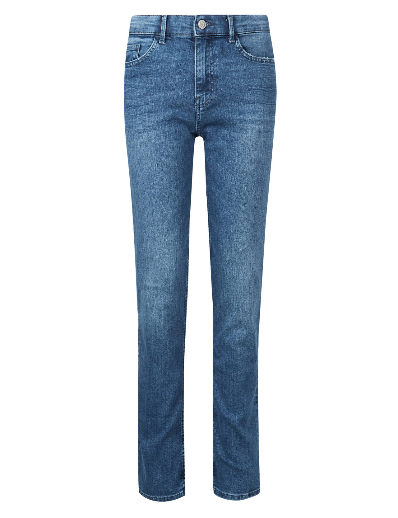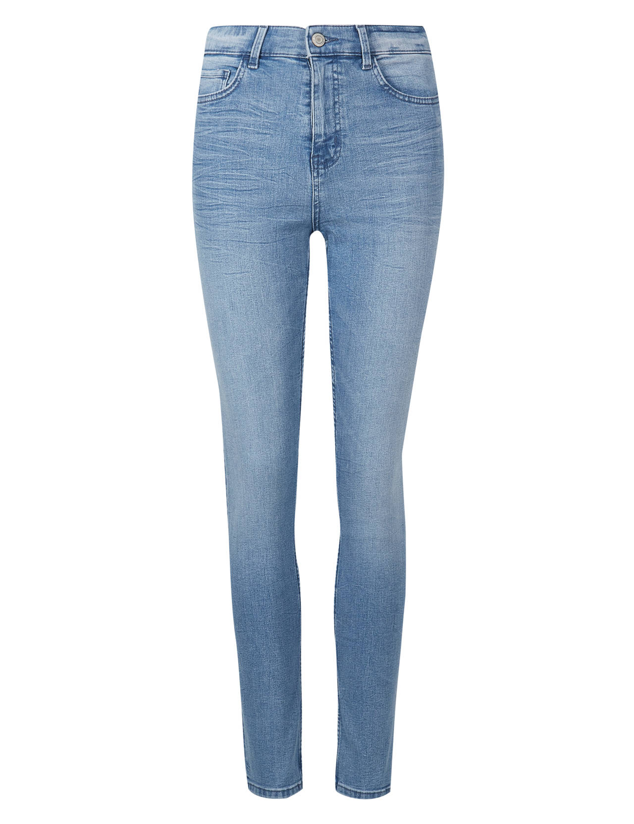 Džíny s pohodlným pružným středně vysokým pasem. Ženám vykouzlí úzkou siluetu až ke kotníkům.